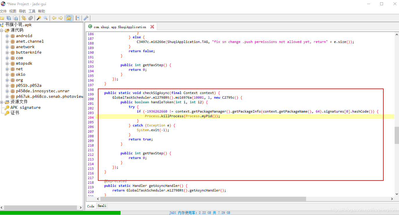 转换成 java 代码进行分析( 这里使用 jadx-gui 转换 )