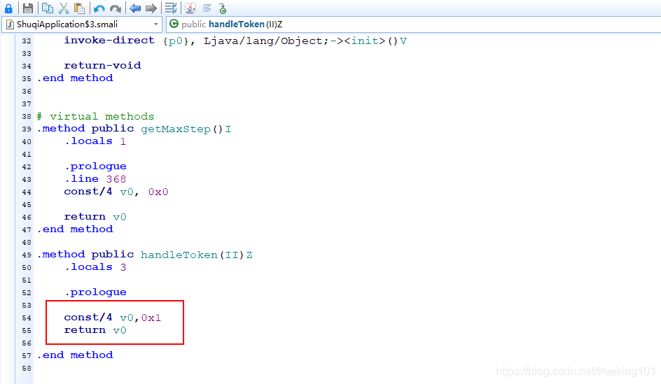 5. 让这个 handleToken 方法返回 true 即可 我们打开 Androidkiller 修改 smali