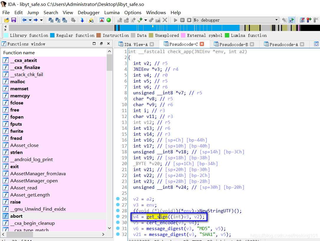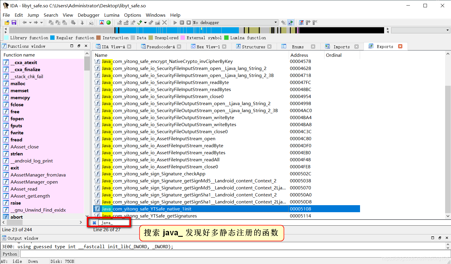 使用 IDA Pro 打开提取到的 libyt_safe.so 文件。