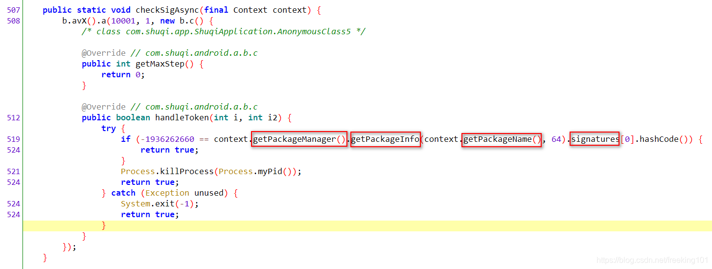点击进入 checkSigAsync 方法,可以看到就是进行签名校验的。。。
