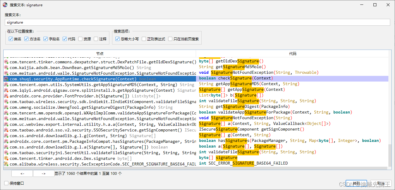 jadx 反编译 书旗小说apk ,然后搜索 signature ,