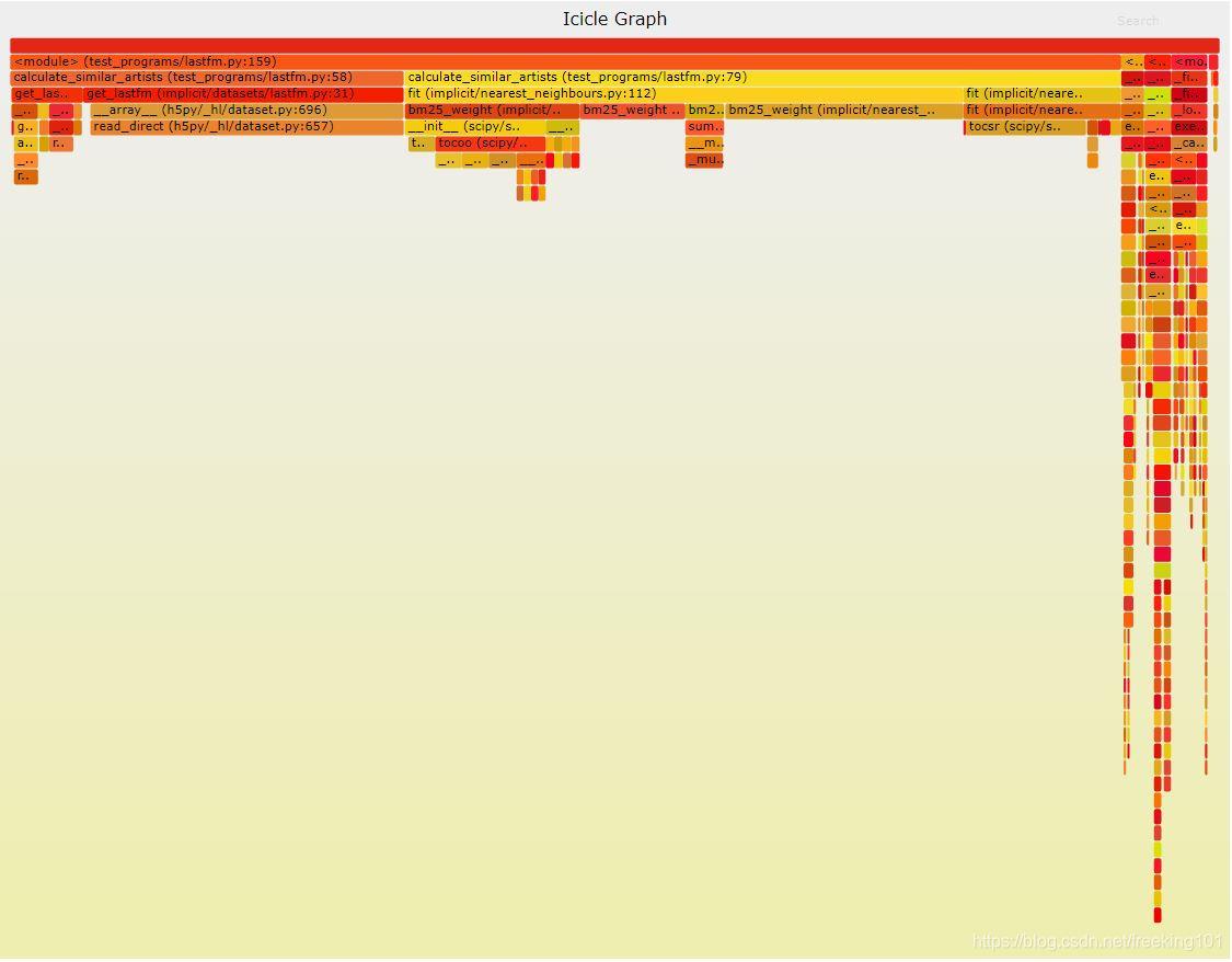 由于我们通过查看PyInterpreterState来获取python程序的调用堆栈,我们还没有获得有关非python线程的信息,也无法分析像Cython或C ++等语言编写的本机扩展。 本机代码将显示为在调用本机函数的Python行中花费时间,而不是现在它自己的条目。