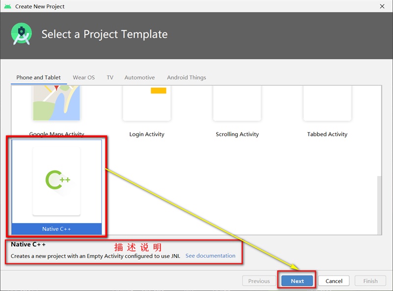 2. 打开 Android Studio,新建一个 Native C++工程。