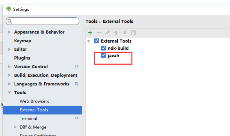 3、写好之后本地native方法之后,配置Javah, 操作步骤:File-Tools-External Tools-"点击加号" name随便起一个,方便统一叫javah, 下面的Description可以和上面一致;