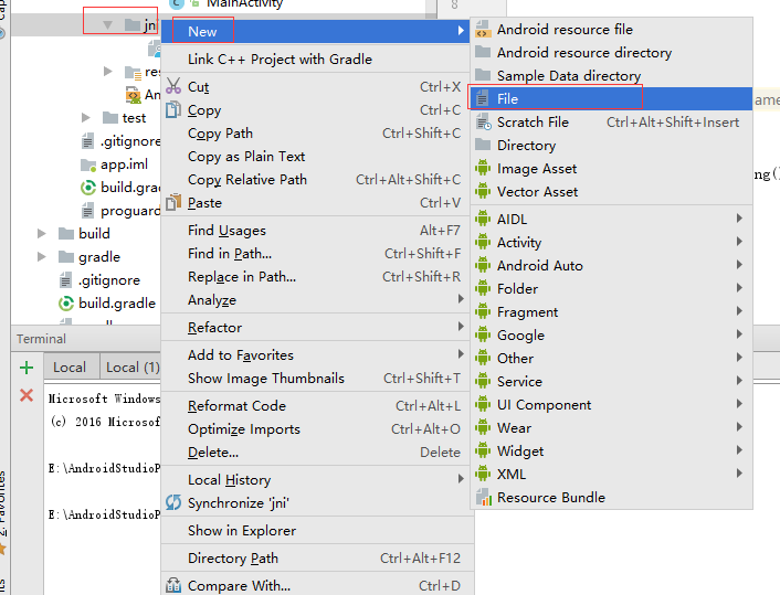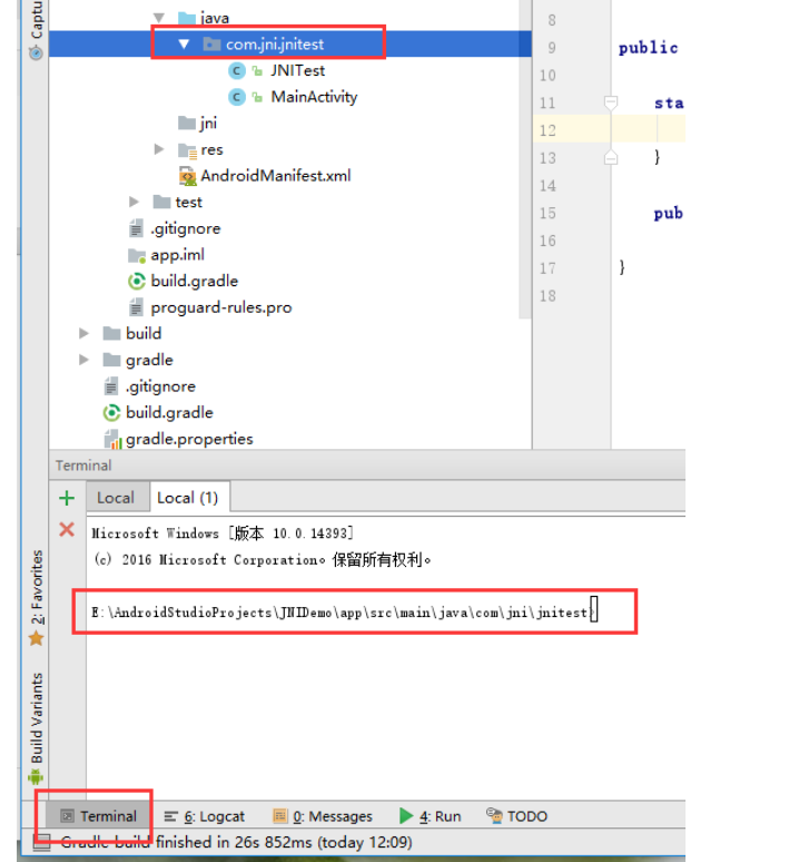 右键拖动JNI类所在的包的路径到Terminal,自动切换到该目录下
