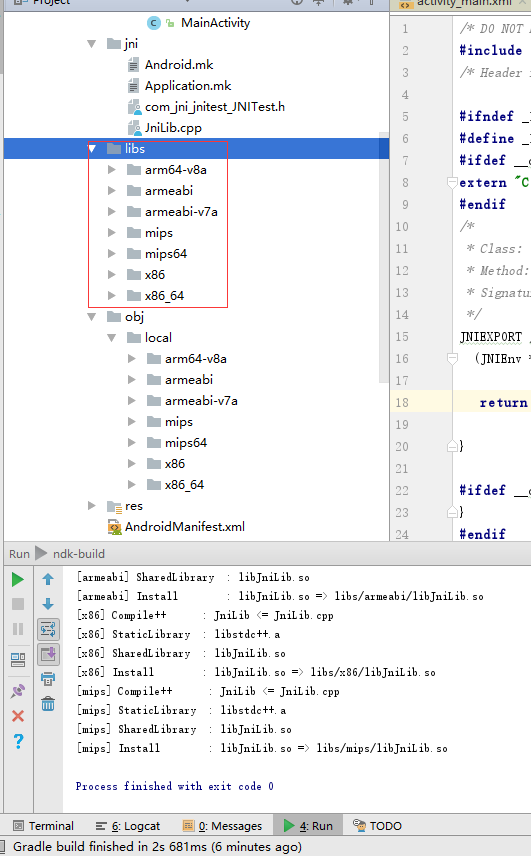 // abiFilters "armeabi", "armeabi-v7a", "x86" //输出指定的三种abi体系下的so库}sourceSets.main{jni.srcDirs = []jniLibs.srcDir "src/main/libs"}