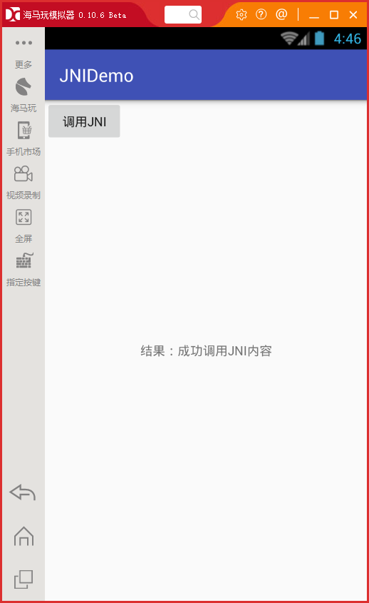 JNIEXPORT jstring JNICALL Java_com_jni_jnitest_JNITest_getString(JNIEnv * env, jobject jobject){return (*env).NewStringUTF("成功调用JNI内容");}