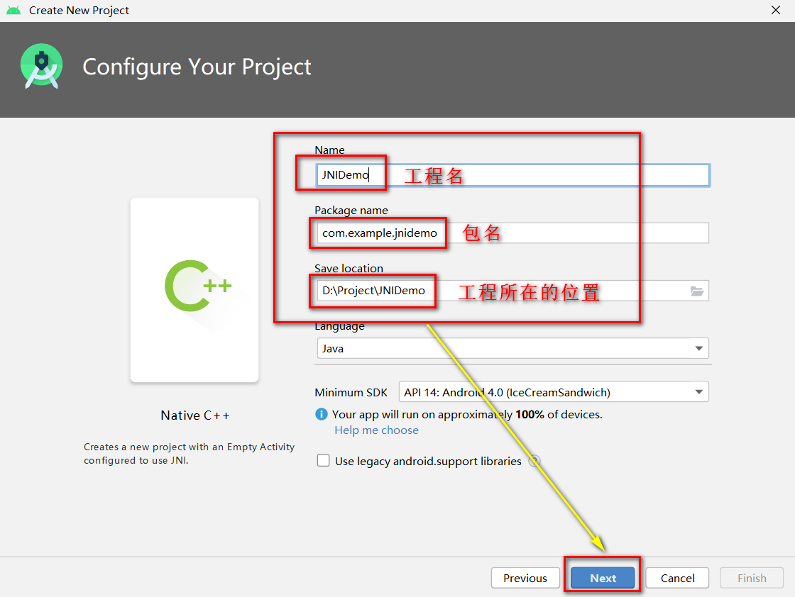 把这个勾选上,不然后面还需要配置,勾选上就无须自己配置Cmake,Gradle啦)