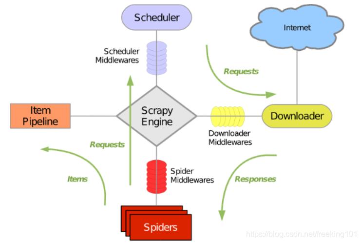 21. 爬虫中间件class SpiderMiddleware(object):def process_spider_input(self,response, spider):'''下载完成,执行,然后交给parse处理:param response: :param spider: :return: '''passdef process_spider_output(self,response, result, spider):'''spider处理完成,返回时调用:param response::param result::param spider::return: 必须返回包含 Request 或 Item 对象的可迭代对象(iterable)'''return resultdef process_spider_exception(self,response, exception, spider):'''异常调用:param response::param exception::param spider::return: None,继续交给后续中间件处理异常;含 Response 或 Item 的可迭代对象(iterable),交给调度器或pipeline'''return Nonedef process_start_requests(self,start_requests, spider):'''爬虫启动时调用:param start_requests::param spider::return: 包含 Request 对象的可迭代对象'''return start_requests内置爬虫中间件:'scrapy.contrib.spidermiddleware.httperror.HttpErrorMiddleware': 50,'scrapy.contrib.spidermiddleware.offsite.OffsiteMiddleware': 500,'scrapy.contrib.spidermiddleware.referer.RefererMiddleware': 700,'scrapy.contrib.spidermiddleware.urllength.UrlLengthMiddleware': 800,'scrapy.contrib.spidermiddleware.depth.DepthMiddleware': 900,"""