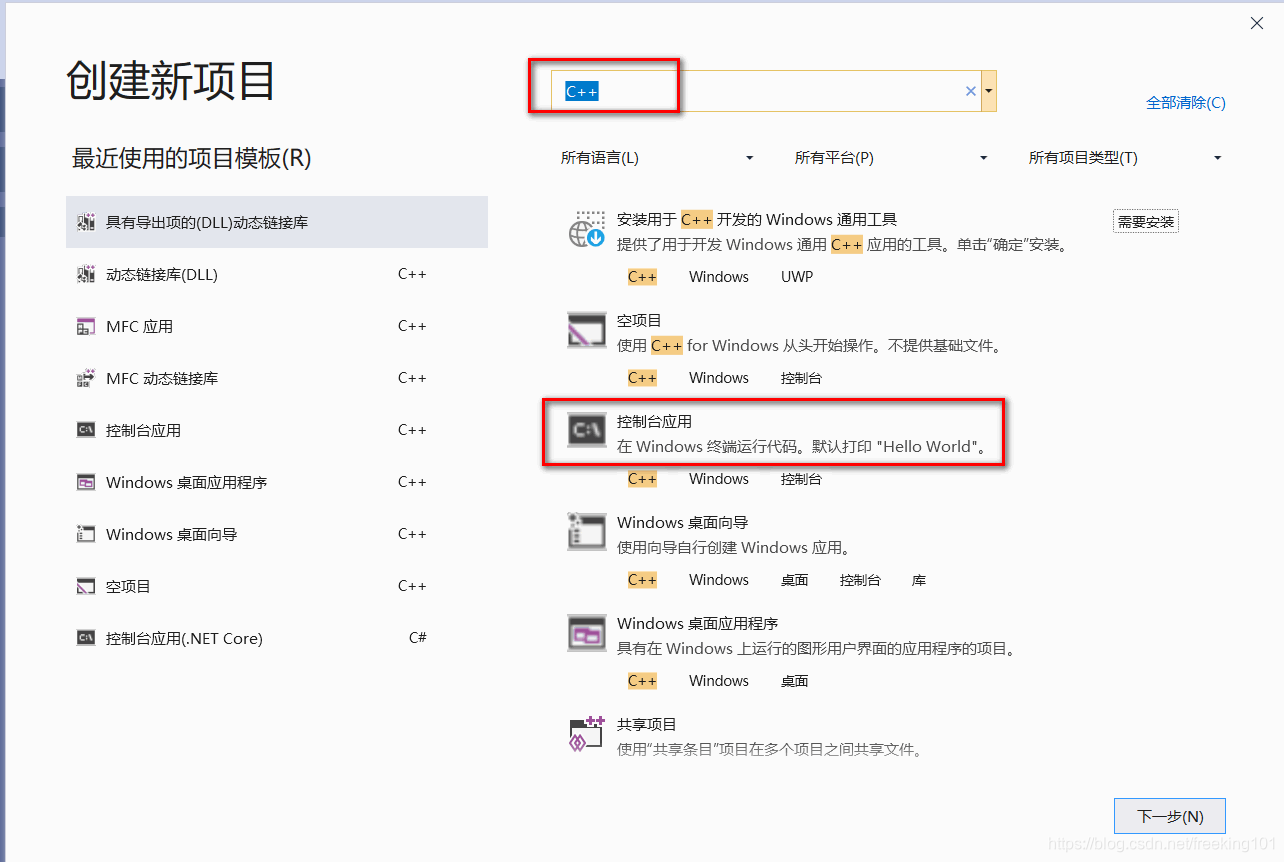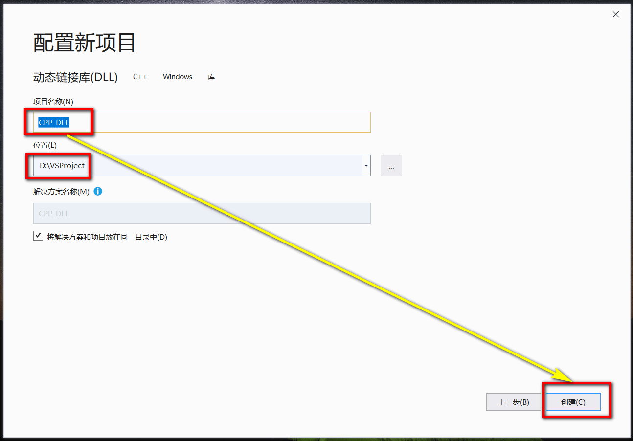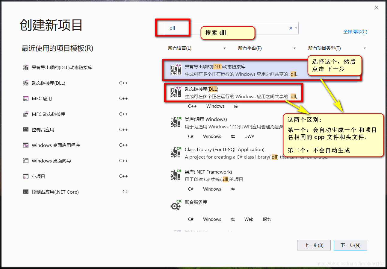 新建项目,搜索 DLL ,选择 “ 具有导出项的(DLL)动态链接库 ”,