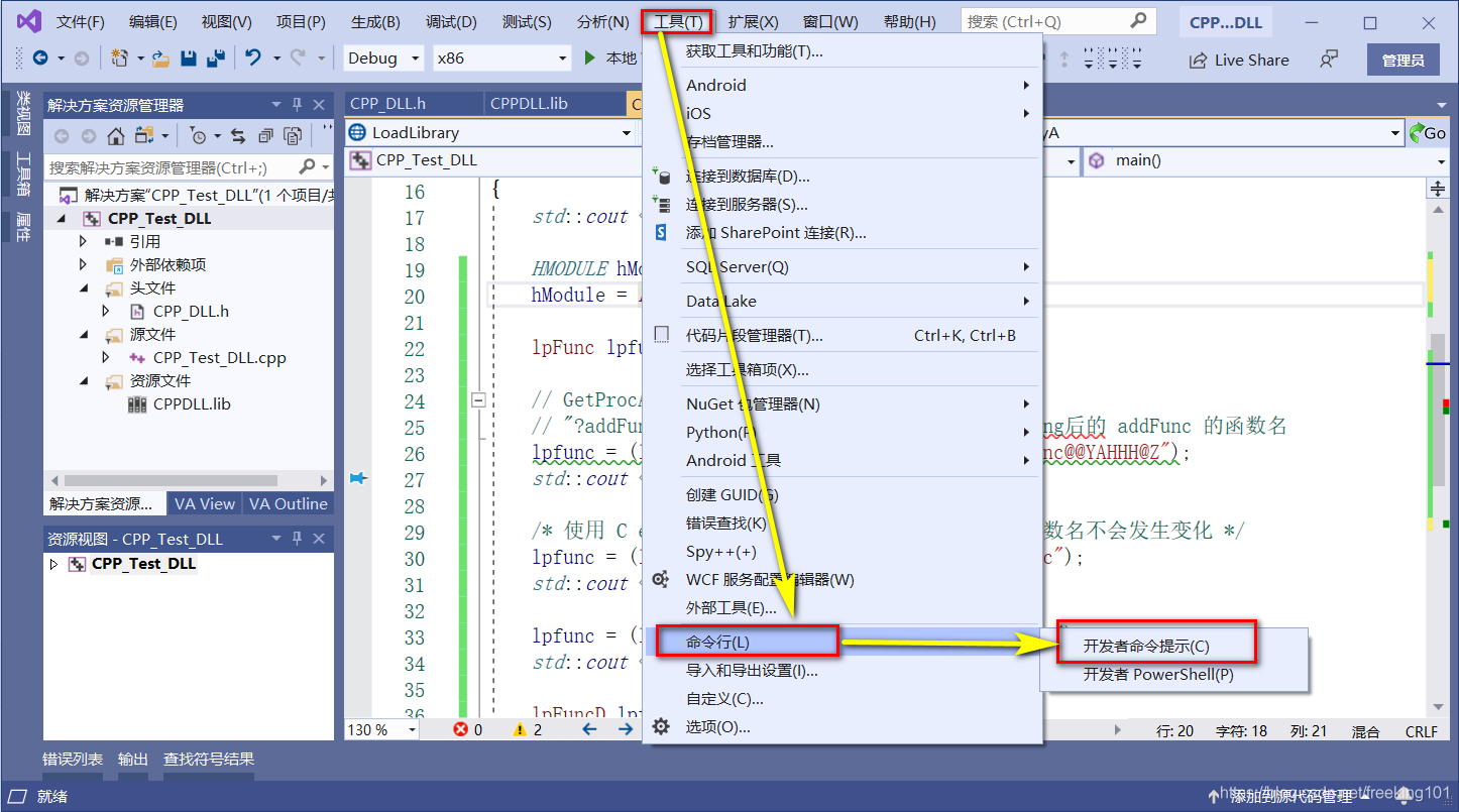 #pragma comment (lib,"./CPPDLL.lib") // 添加 lib 文件int main()