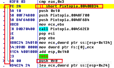 2、这句话同我们看到的一样,确定程序在这里将其压入栈;