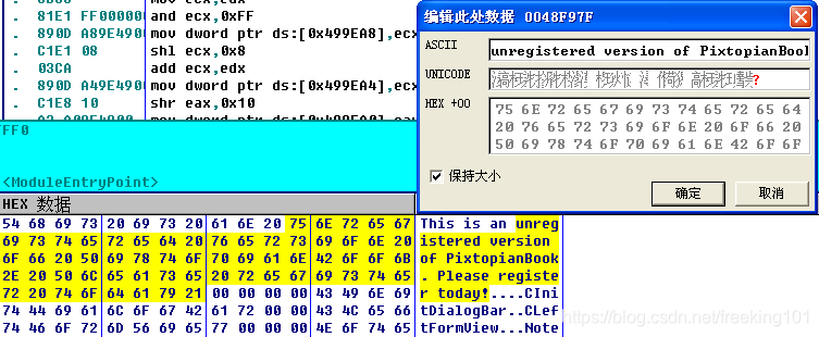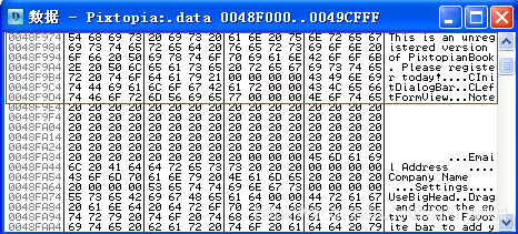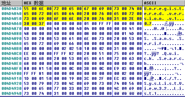 同样是在内存中查找,在弹出的搜索框里输入关键字:(UNREGISTERED VER