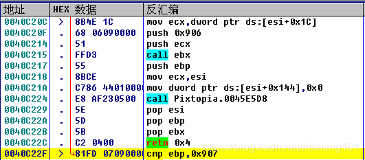 又有一处cmp和jnz,意思是如果ebp不等于906,就要跳转回0040C22F处。