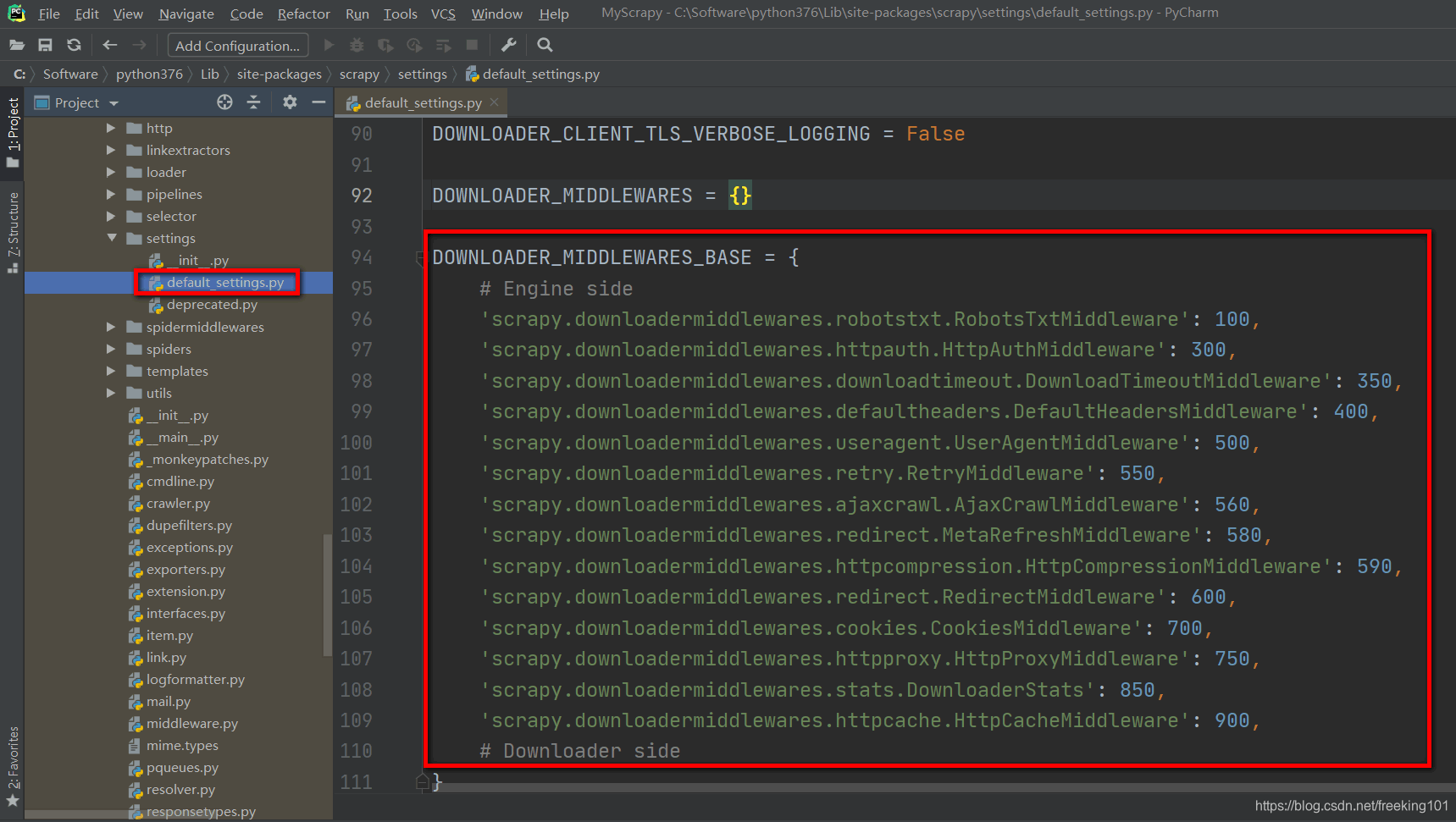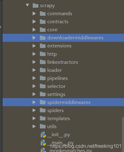 通过查看 Scrapy 源码可以发现,总共就 2 种 类型的中间件:爬虫中间件 和 下载器中间件。