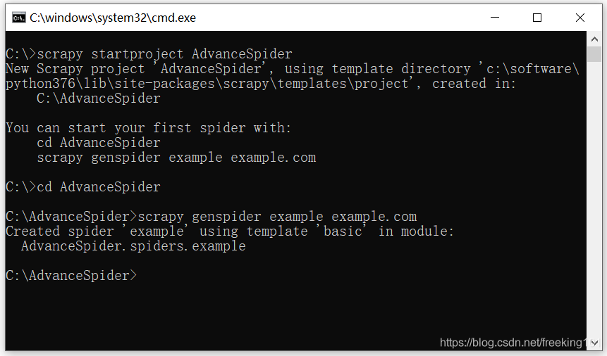 创建 scrapy 工程:scrapy startproject <工程名>
