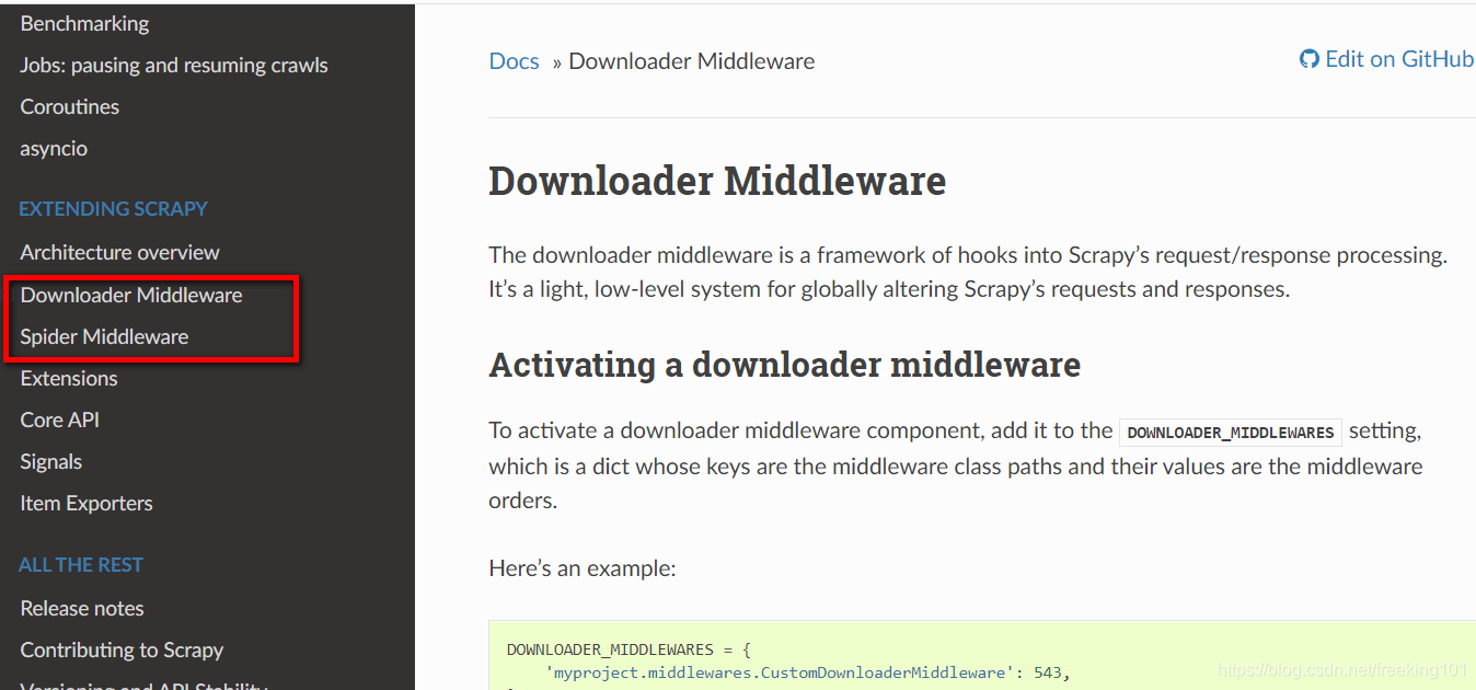 Scrapy 的官方文档中,对下载器中间件的解释如下。