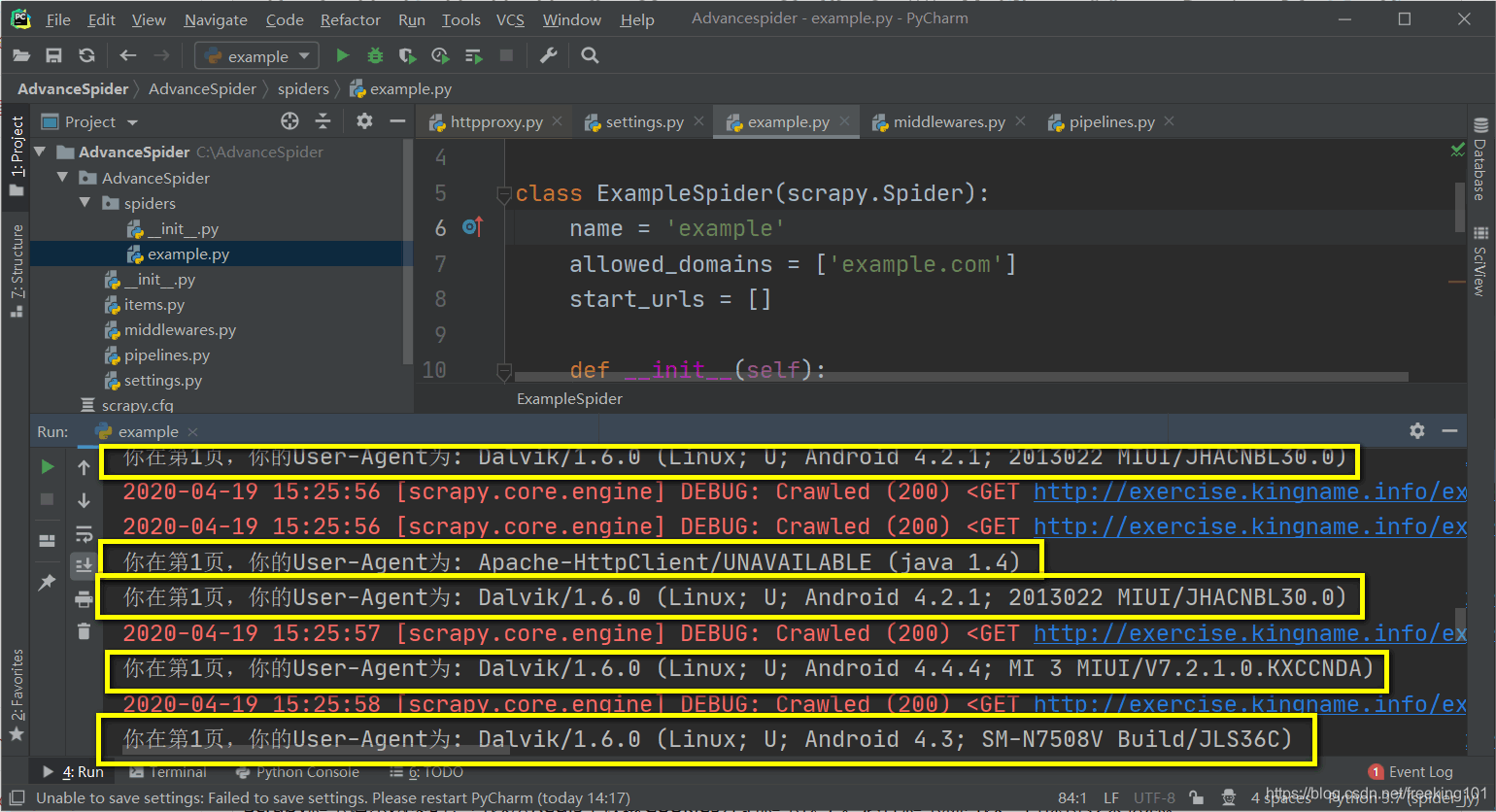 由于用到了 random 和 settings,所以需要在 middlewares.py 开头导入它们: