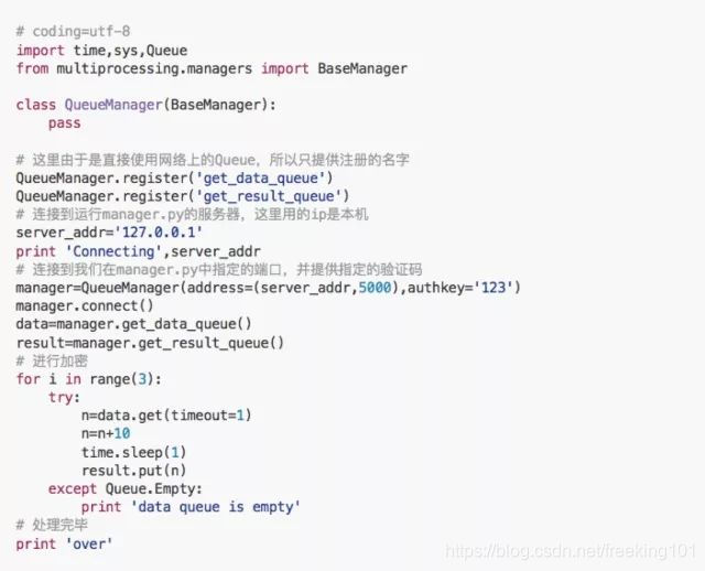 myqueue = Queue.Queue() # multiprocessing 模块中队列,多进程安全 - 3. multiprocessing 模块中 manager 的队列,多进程安全。Manager 是 multiprocessing 的封装