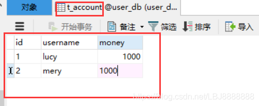 public class UserDaoImpl implements UserDao{@Autowiredprivate JdbcTemplate jdbcTemplate;@Overridepublic void reduceMoney() {String sql="update t_account set money=money-? where username=?";jdbcTemplate.update(sql,100,"lucy");}@Overridepublic void addMoney() {String sql="update t_account set money=money+? where username=?";jdbcTemplate.update(sql,100,"mary");}}