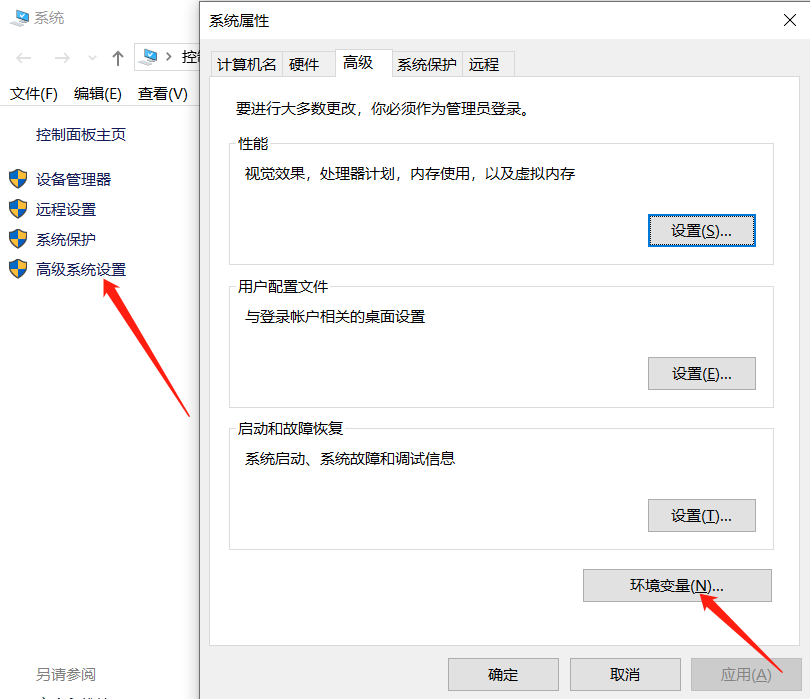 - 首先点击我的电脑-->找到并点击属性-->点击高级设置-->点击环境变量-->选中Path路径点击编辑