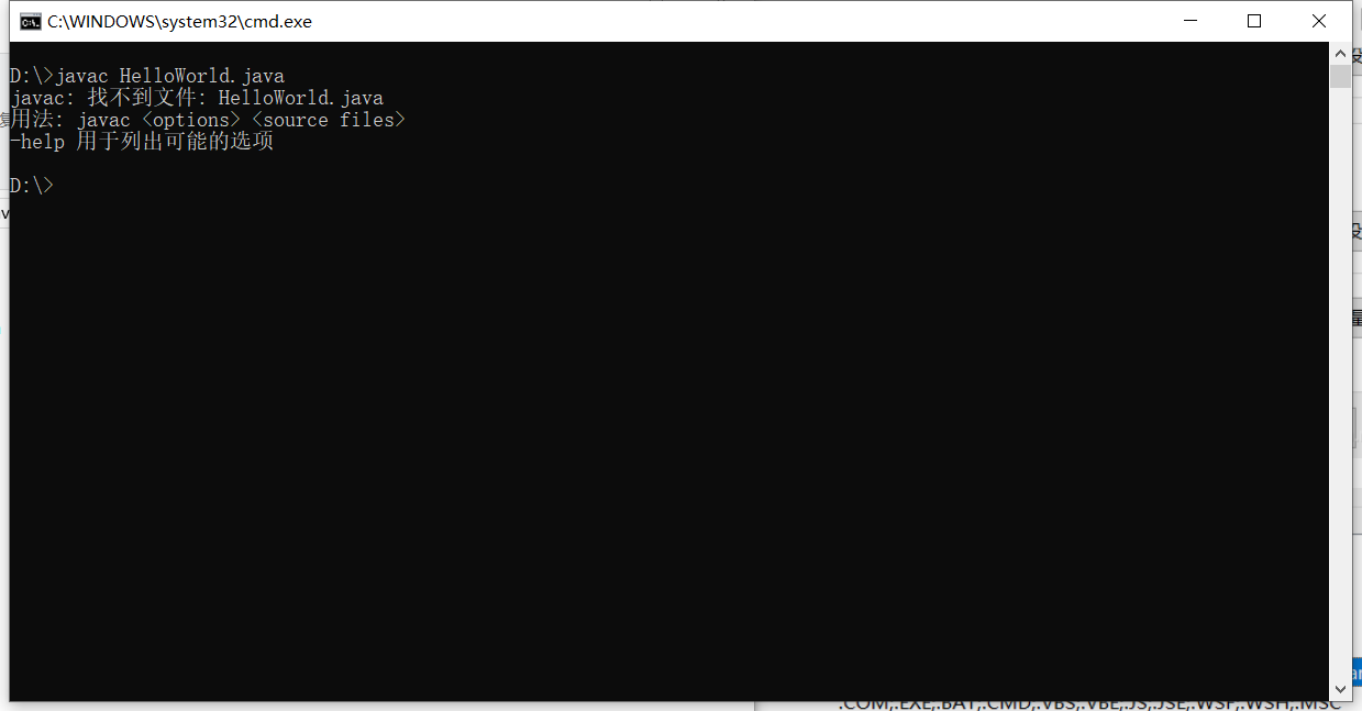 如果出现切换盘符不成功(例如你的HelloWorld.java放在D盘)