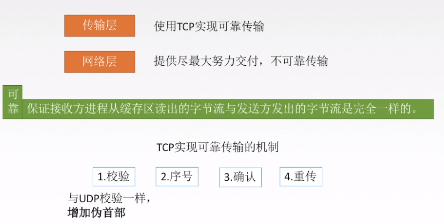 如果是UDP,则在应用层实现可靠。 - 机制:校验、序号、确认、重传