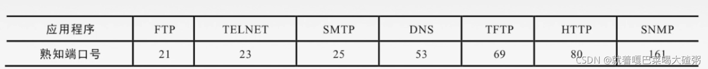 - 服务端使用的端口号:还分为熟知端口号(0 ~ 1023,给TCP/IP最重要的一些应用程序,让所有用户都知道)和登记端口号(1024 ~ 49151,为没有熟知端口号的应用程序使用的)。