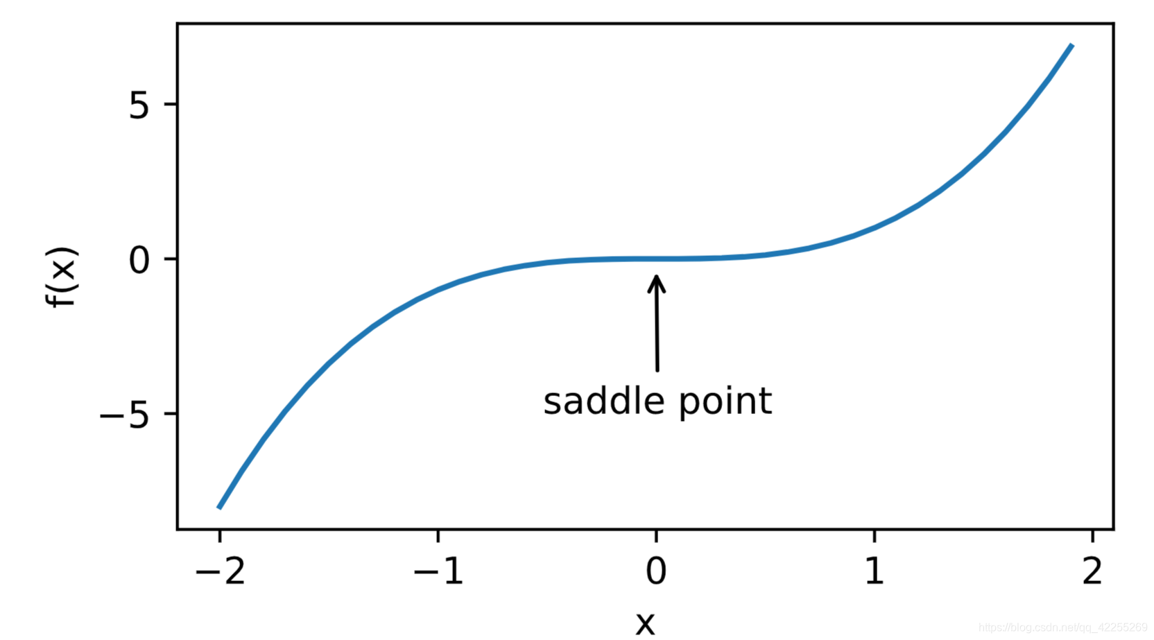 - 当函数的海森矩阵在梯度为零的位置上的特征值有正有负时,该函数得到鞍点。