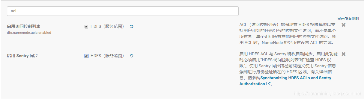 启动HDFS ACL控制,与Sentry权限同步