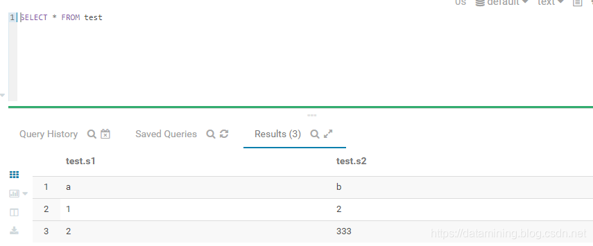 0: jdbc:hive2://hostname:10000/> select s2 from test;
