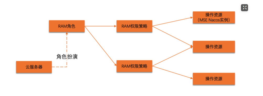 上述的关键步骤在角色扮演。只有关联了RAM角色的云服务器,才能成功扮演角色,从而获取操作MSE Nacos实例的权限。