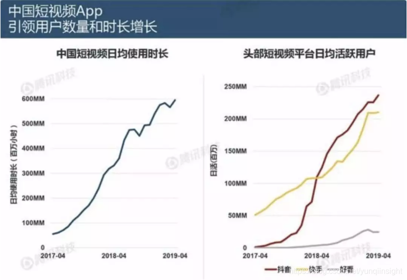 随着4G的普及和5G的推出,内容消费的诉求越来越受到人们的重视。2019年互联网趋势报告指出在移动互联网行业整体增速放缓的大背景下,短视频行业异军突起,成为“行业黑洞”抢夺用户时间,尽管移动互联网人口红利见顶,新的增长点难以寻觅,但中国短视频人均使用时长及头部短视频平台日均活跃用户均持续增常(如图1所示)。