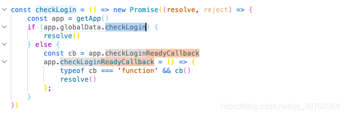 首先以首页为例,如果我们在首页调用接口的话,那肯定需要先拿到token先,再调用其他业务接口,所以我们先在首页调用await util.checkLogin(),代码如图三所示,如果globalData.checkLogin的值已经为true了,那说明已经拿到token,直接resolve,执行后面的方法,如果不是true,那就设置一个回调函数checkLoginReadyCallback,等到拿到token了,执行这个回调函数,再执行后面的代码,如果一些页面是直接扫码进来的,可以像首页一样调用await util.checkLogin()来检查token和获取token