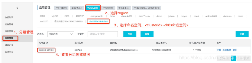 看到status中conditions中Ready为true表示创建成功,此时可以登录应用分组管理控制台查看分组创建情况: