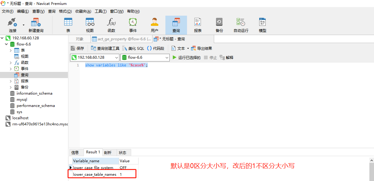 lower_case_table_names的值 0表示区分大小写 1表示不区分大小写