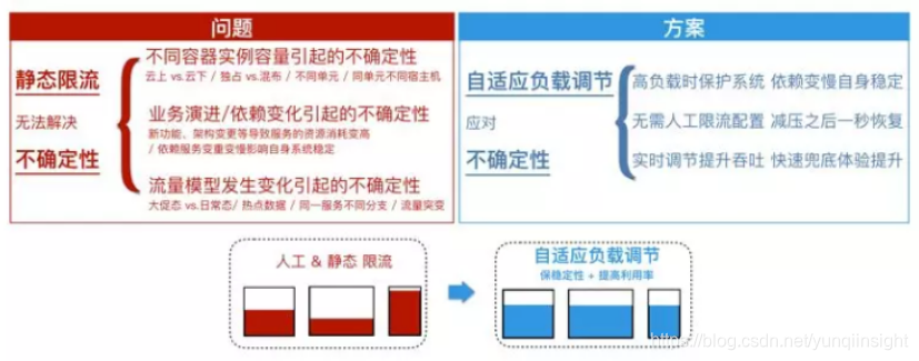 - 如使用自适应负载调节进行解决。来应对由于流量容量预估不准而带来的稳定性问题。