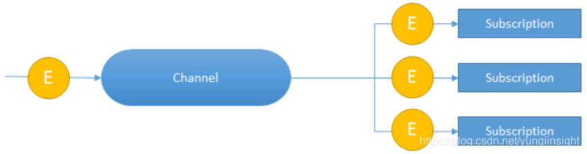 Broker 字面意思为代理者,那么它代理的是谁呢?是Channel。为什么要代理Channel呢,而不直接发给访问Channel。这个其实涉及到Broker/Trigger设计的初衷:对事件过滤处理。我们知道Channel(消息通道)负责事件传递,Subscription(订阅)负责订阅事件,通常这二者的模型如下: