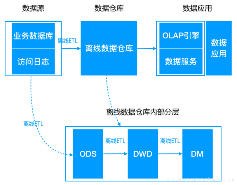 典型的数仓存储是HDFS/Hive,ETL可以是MapReduce脚本或HiveSQL。