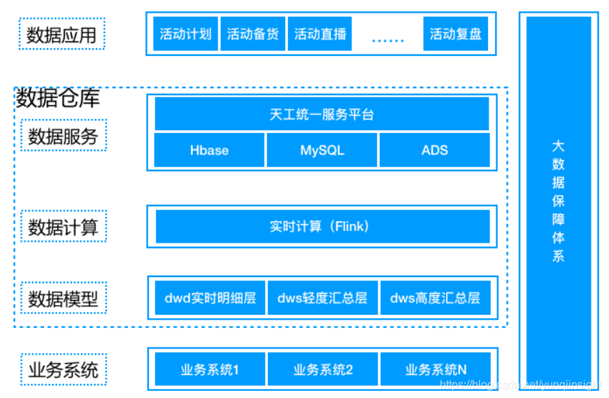 整体设计如右图,基于业务系统的数据,数据模型采用中间层的设计理念,建设仓配实时数仓;计算引擎,选择更易用、性能表现更佳的实时计算作为主要的计算引擎;数据服务,选择天工数据服务中间件,避免直连数据库,且基于天工可以做到主备链路灵活配置秒级切换;数据应用,围绕大促全链路,从活动计划、活动备货、活动直播、活动售后、活动复盘五个维度,建设仓配大促数据体系。