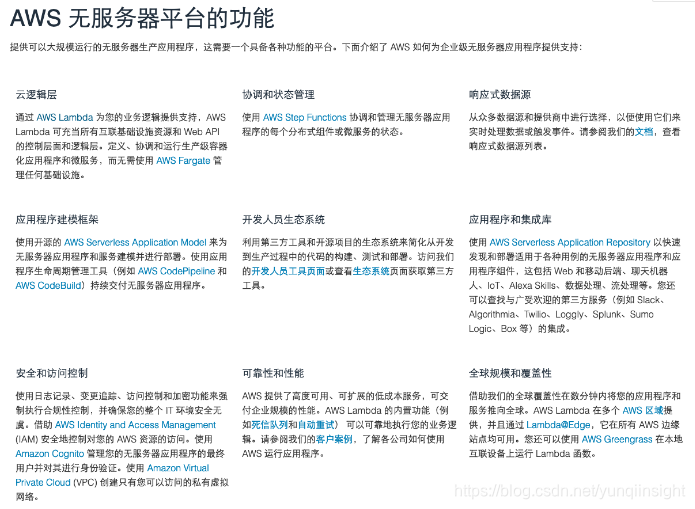 AWS 无服务器平台提供的功能:(摘自 AWS 官网)