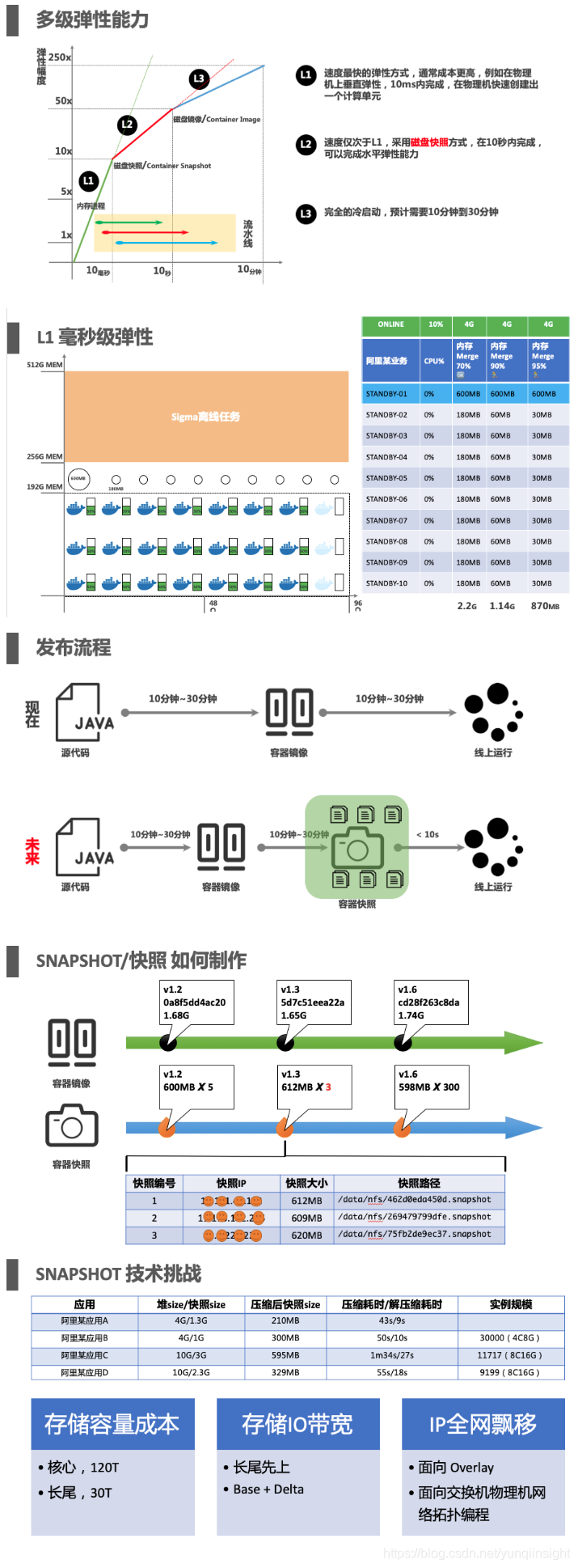L1 总结来看是一种高密度部署方式,由于应用已经提前启动,并且对容器进行冻结,意味着这个应用实例 CPU 占用率为0,RAM 占用相当于之前的1/20,但是具备了毫秒级弹性的能力。L1的特点是启动速度极快,但是需要消耗资源,且只能垂直弹性。