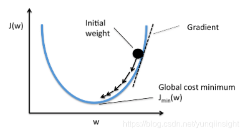 梯度下降是训练机器学习算法中常用的优化技术。训练机器学习算法的主要目的是调整权重w以最小化损失函数或成本函数。通过最小化成本函数,就可以找到产生最佳模型性能的参数[1]。