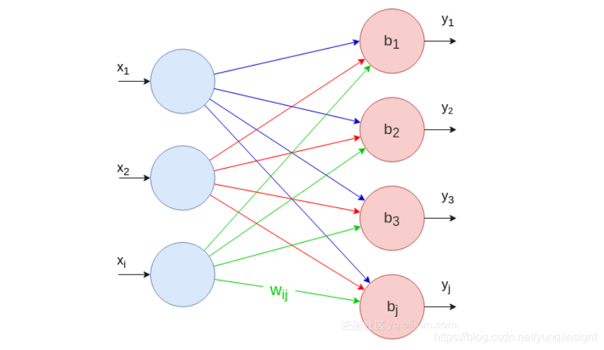 每个输出神经元的值由下式计算: