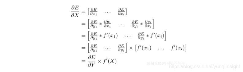 假设给出一个层相对于其输出(∂E/∂Y)误差的导数,那么它必须能够提供相对于其输入(∂E/∂X)误差的导数。