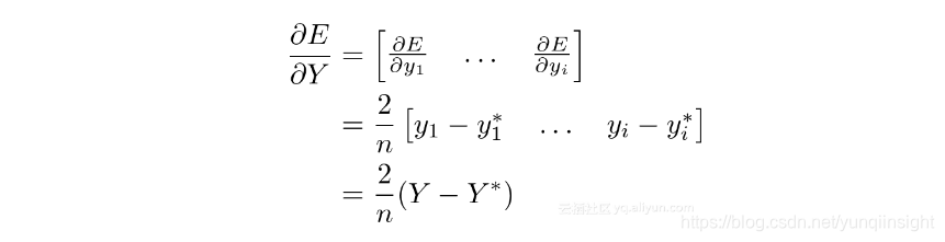 其中y *和y分别表示期望的输出和实际输出。你可以将损失视为最后一层,它将所有输出神经元吸收并将它们压成一个神经元。与其他每一层一样,需要定义∂E/∂Y。除了现在,我们终于得到E!