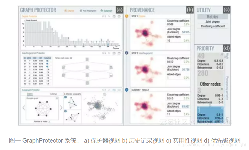 下面将向大家详细介绍GraphProtector 系统的可视化及交互设计。系统主要围绕两个界面进行(图一和图四):