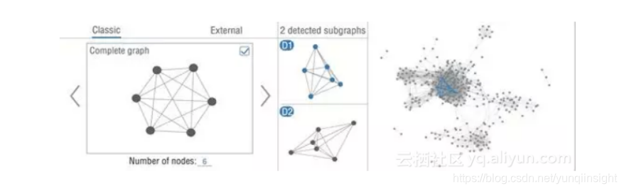 子图保护器分为三个部分,左侧为子图设定面板,使用者通过这个面板设定子图,子图可以来自于一些经典拓扑结构,如形状结构,环形结构等,也支持从外部导入。在子图设定面板中,系统同样通过灰色矩形的个数编码识别得到的子图的个数。中间面板为子图识别面板,将可视化图中识别得到的当前子图结构和相似子图结构,当识别得到的当前子图结构不满足k值时,用户可以选择将相似的子图补全成为当前的子图。右侧子图结构展示面板,使用者可以通过与子图识别面板的交互查看子图在图中的位置。