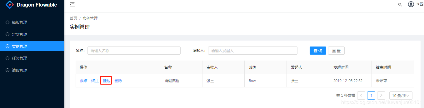 public ReturnVo<String> suspendOrActivateProcessInstanceById(String processInstanceId, Integer suspensionState) {ReturnVo<String> returnVo = null;if (suspensionState == 1) {runtimeService.suspendProcessInstanceById(processInstanceId);returnVo = new ReturnVo<>(ReturnCode.SUCCESS, "挂起成功");} else {runtimeService.activateProcessInstanceById(processInstanceId);returnVo = new ReturnVo<>(ReturnCode.SUCCESS, "激活成功");}return returnVo;}