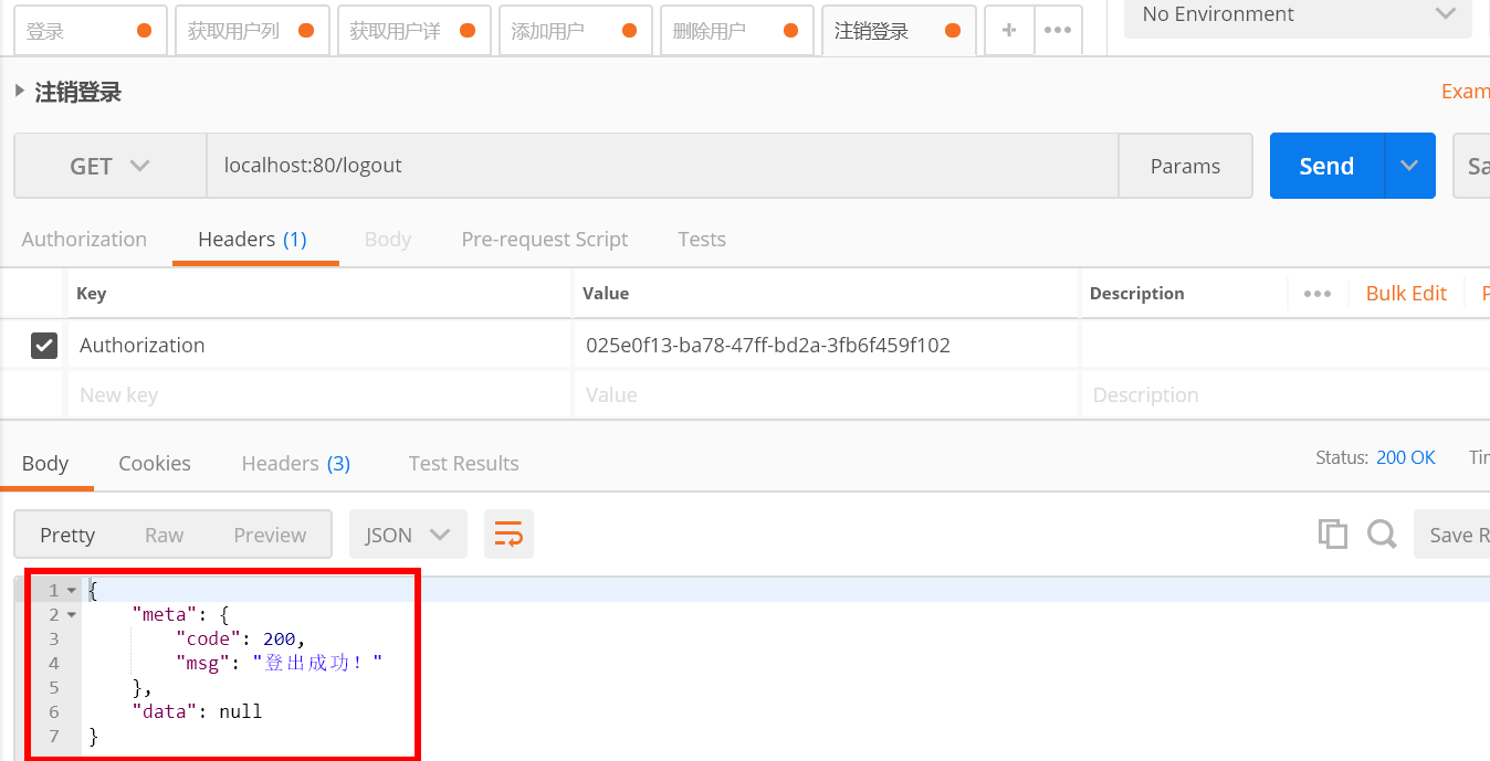 | 获取用户详情 | GET | localhost:80/user/1 | Authorization |